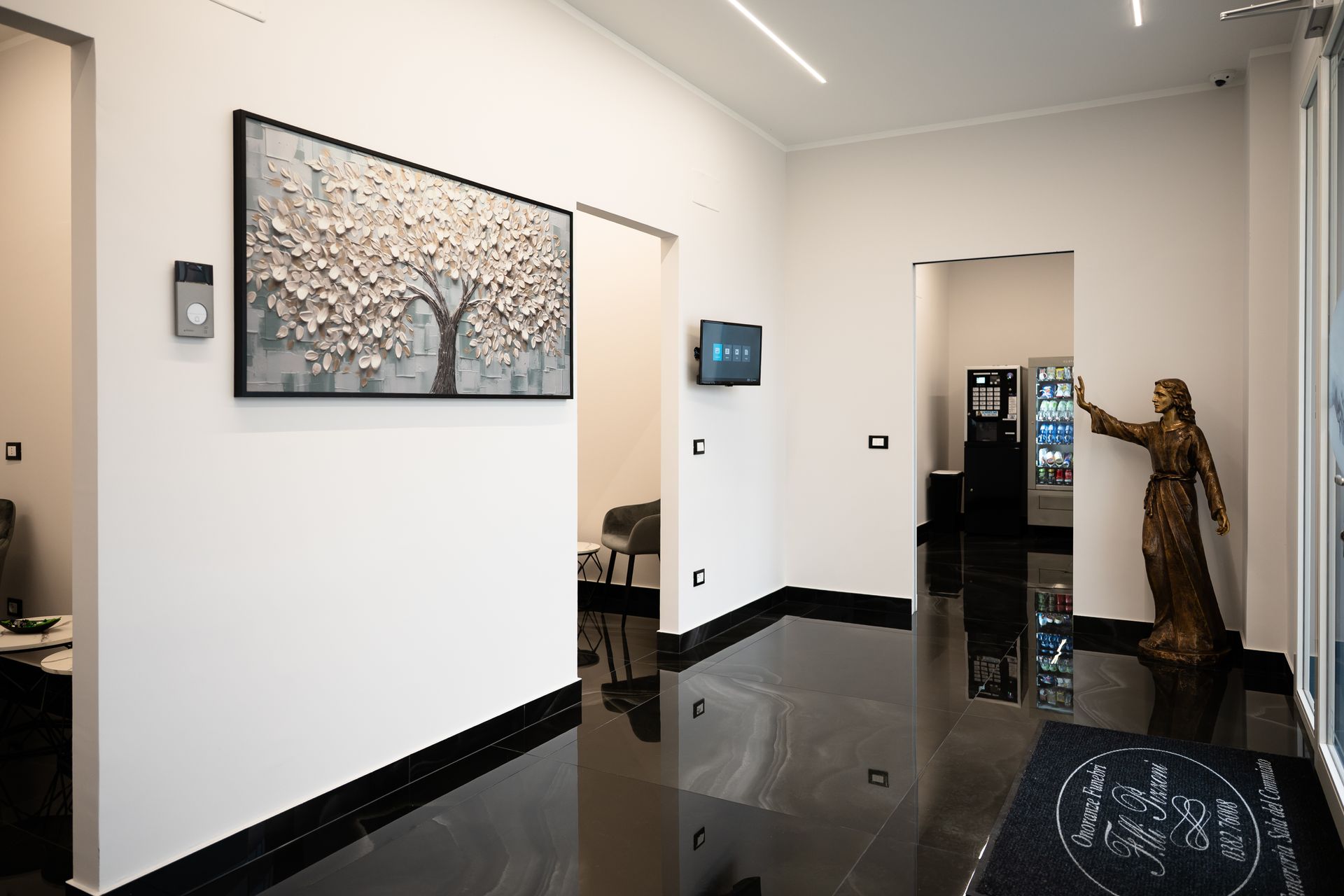 La struttura è progettata per accogliere familiari e amici in un contesto sobrio e curato, dove ogni dettaglio è studiato per favorire raccoglimento e riflessione.